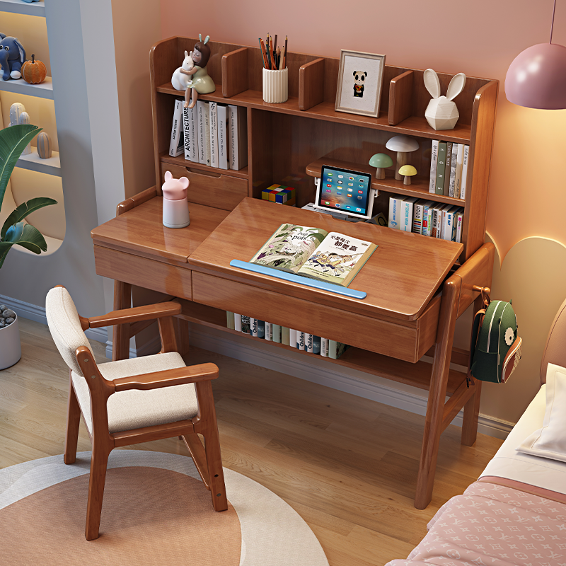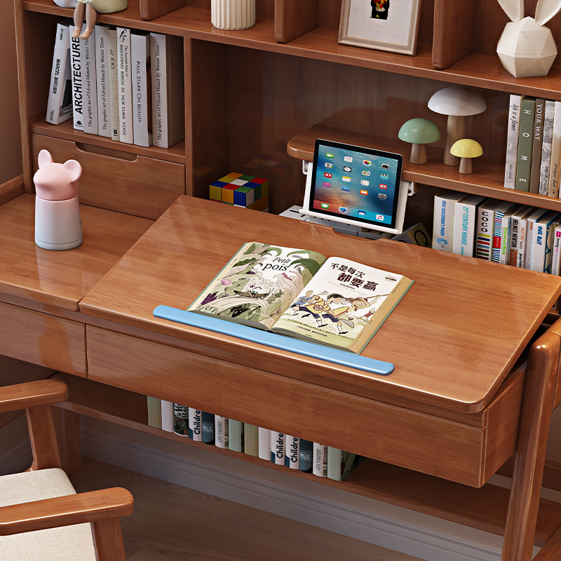 The Solid Wood Study Table with Integrated Bookshelf Hutch features a unique tilting desktop section that adjusts up to 45 degrees, transforming the work surface to suit different activities. Most importantly, this isn't a gimmick—it's a genuinely useful feature that enhances comfort and performance across multiple study scenarios.