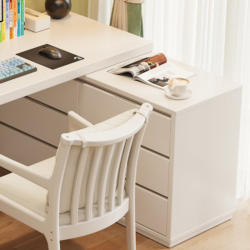 As a result, families with young children—who may use the Solid Wood Study Desk Singapore | Nordic L-Shape Table with Cabinet for art projects, homework or play—can enjoy peace of mind, knowing that spills and marks can be wiped away easily without damaging the underlying wood.