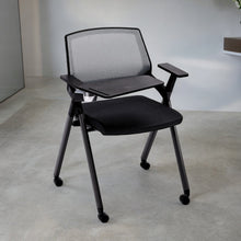 The FlexiLearn chair boasts a sleek, professional look with its predominant black color scheme. Perfect for any classroom chair or training chair setting, its elegant design complements both traditional and modern decor, promoting a focused and serious learning atmosphere.