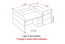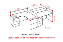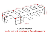 The L-shaped supervisor desktop encourages effective cooperation and communication among team members. Each workstation has threading holes, so thus allowing you to keep your cords orderly and clean. The 1.2 meter wide desktops are built of 2.5cm LDF sheets and offer plenty of space for a pleasant working environment.