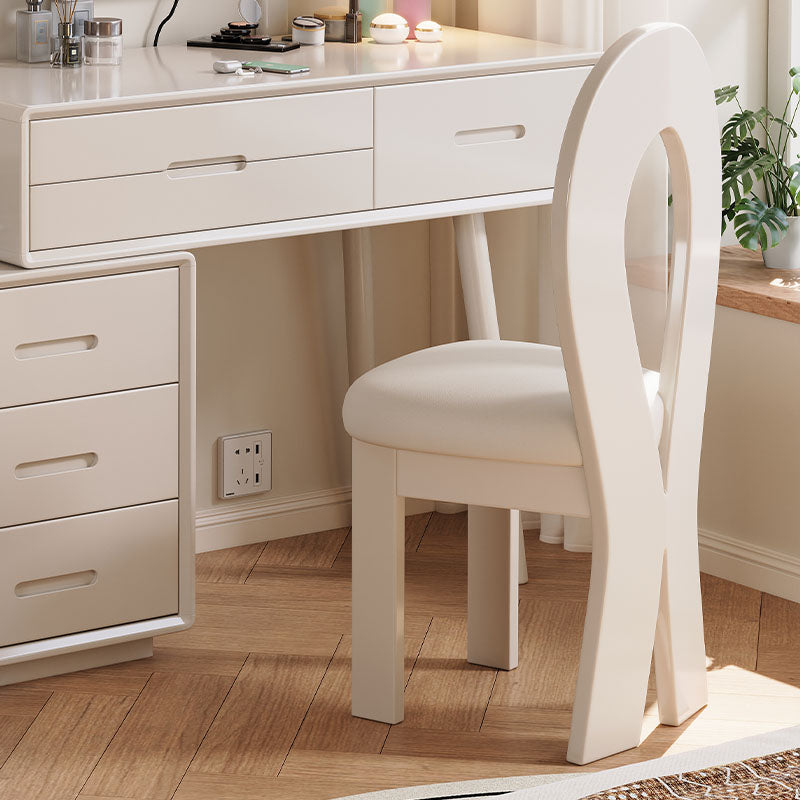 - Every cosmetic chair uses solid rubberwood. This wood is very durable and eco-friendly. It also has beautiful grain patterns. Unlike particle board, solid wood doesn't release harmful chemicals. Therefore, it's safer and lasts longer.
