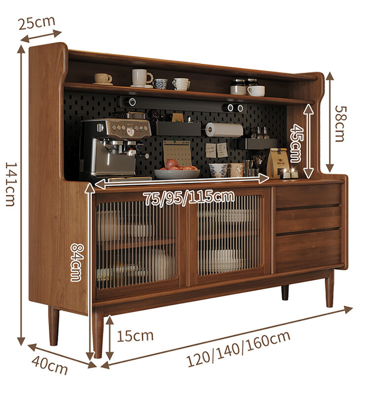 Solid Wood Sideboard Cabinet with Coffee Bar: Functionality Meets Elegance