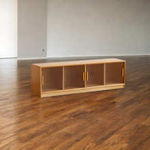 Our sideboard sg model features clean lines and a minimalist design, echoing the sleek Scandinavian style that's revered worldwide. The reeded glass cabinet doors offer a textured look. Furthermmore, enhancing the visual depth and creating an interplay of light and shadow.