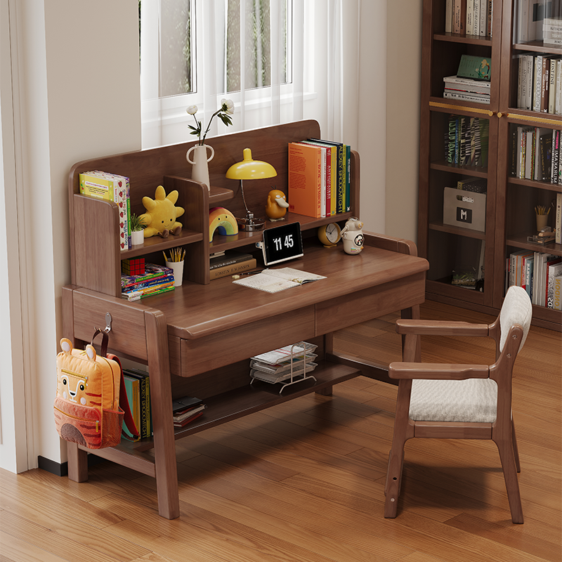 This study table not only features an integrated bookshelf but also includes several storage solutions designed to keep your child's study space organized and clutter-free.