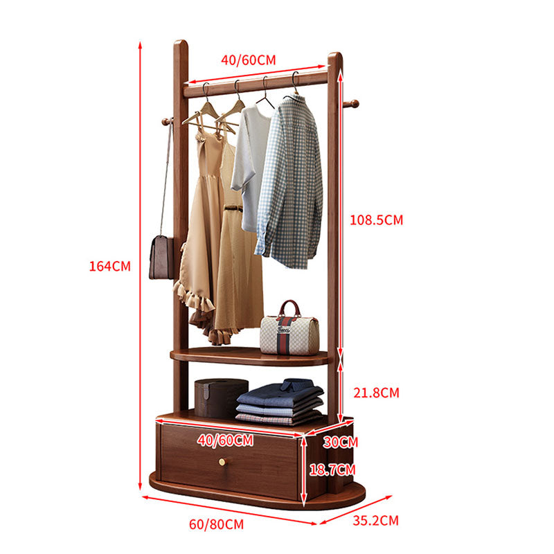 Practical Advantages : Compact Solid Wood Clothes Rack with Storage Drawer
